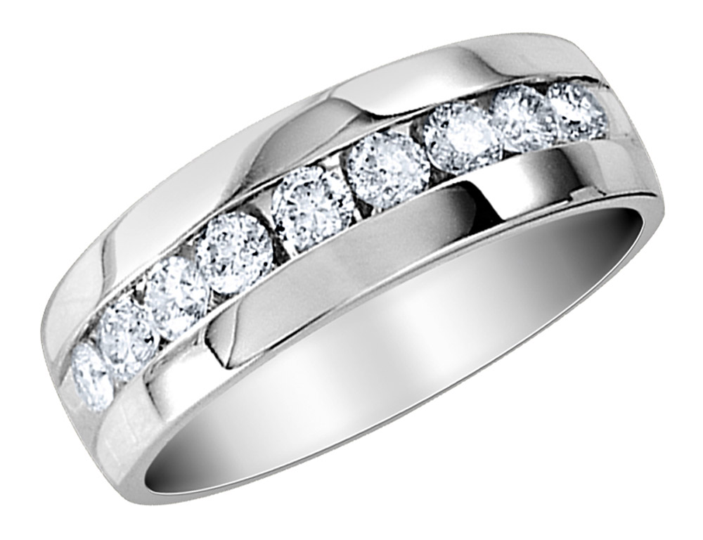 Mens Diamond Channel Wedding Band In 14k White Gold Fascinating