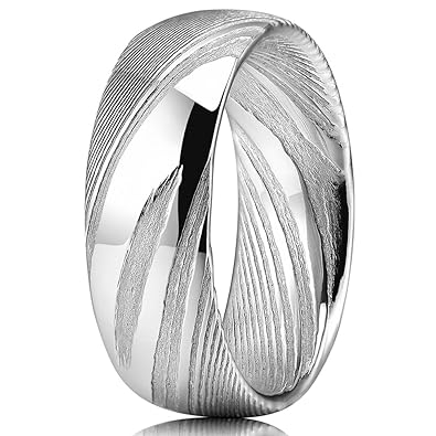 Three Keys Jewelry 8mm Damascus Steel Mens Wedding Ring Domed Wood