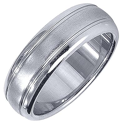 Mens 14k Gold White Gold Comfort Fit Wedding Band 7 Mm Brushed