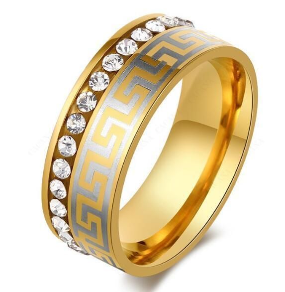 Wholesale Luxury Large Wide 8mm 316 Titanium Steel 18k Yellow Gold